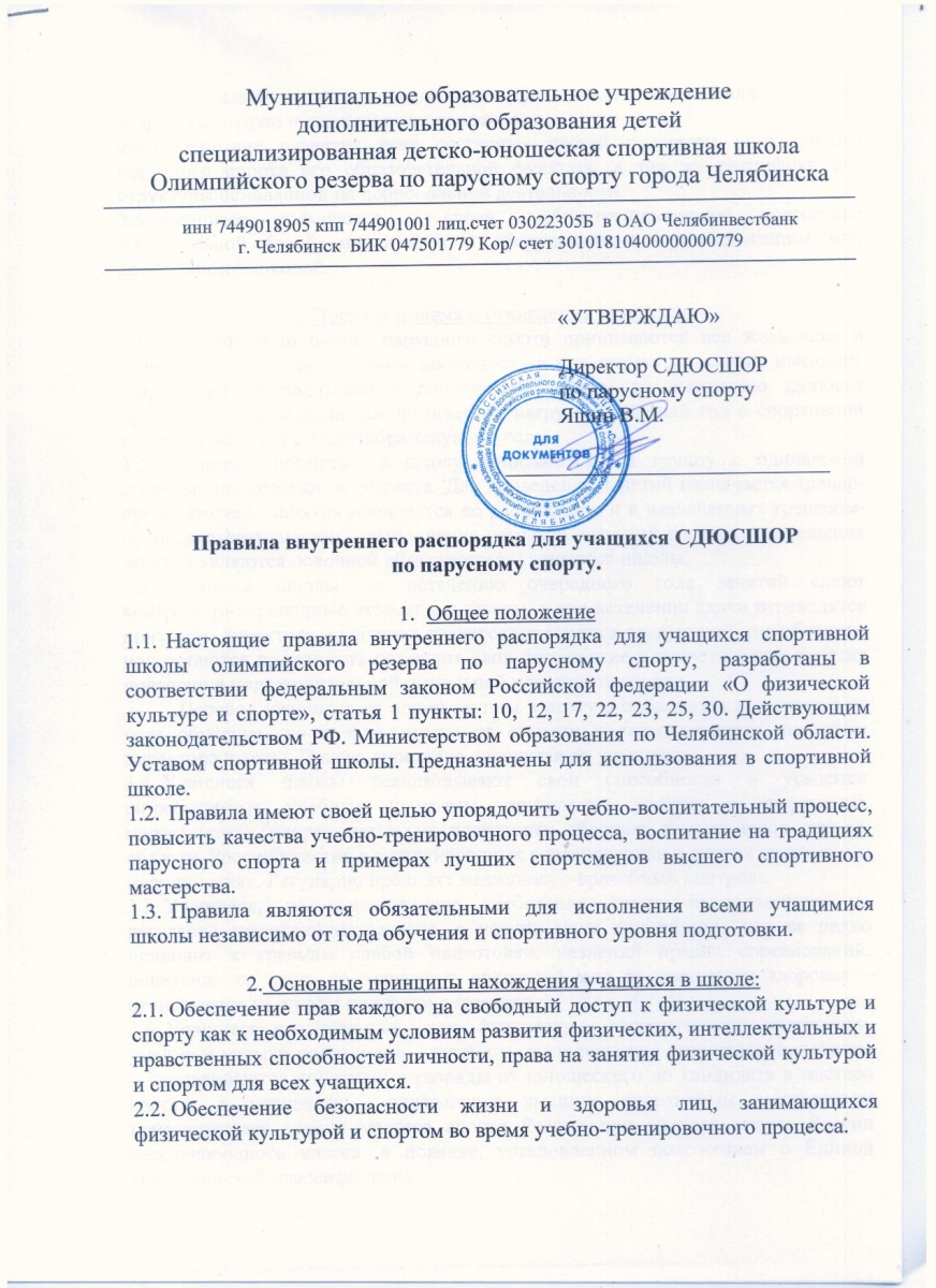 ПРАВИЛА ВНУТРЕННЕГО РАСПОРЯДКА ЗАНИМАЮЩИХСЯ - 1